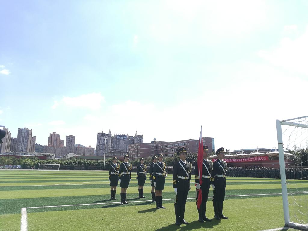 分列式开始,标兵就位,各公司方队依次通过主席台:他们坚定不移的眼神,整齐划一的步伐,将青年朝气展现的淋漓尽致。动如脱兔的匍匐刀;一招制敌的擒敌拳;刚柔并济的军体拳;都游刃有余,展现出了中国新一代青年面貌。