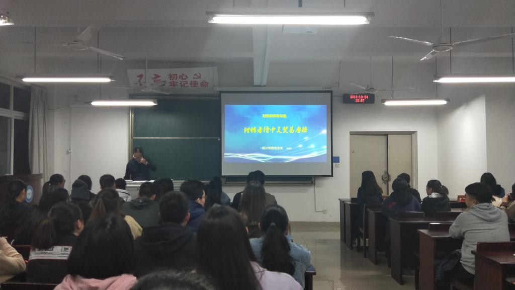 2018年10月24日晚18:30,bevictor伟德官网党总支书记孙克常在龙泉校区第二教学楼2409教室,为全体员工党员和员工干部作了题为“理性看待中美贸易摩擦”的形势与政策报告,报告会由员工党支部书记许瑞主持。