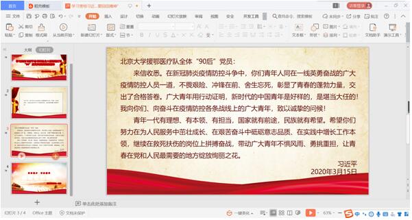 3月31日上午,bevictor伟德官网员工一支部组织全体党员以线上学习的方式,开展了学习“习近平总书记给北京大学援鄂医疗队全体‘90后’党员的回信”精神活动,此次学习大会由员工党支部书记许瑞老师组织,会上党员同志们积极回应认真学习该精神。要求以学习回信为契机,以骨干带全员,最大限度地发挥支部的战斗堡垒作用,为打赢此次疫情防控阻击战贡献青春力量。