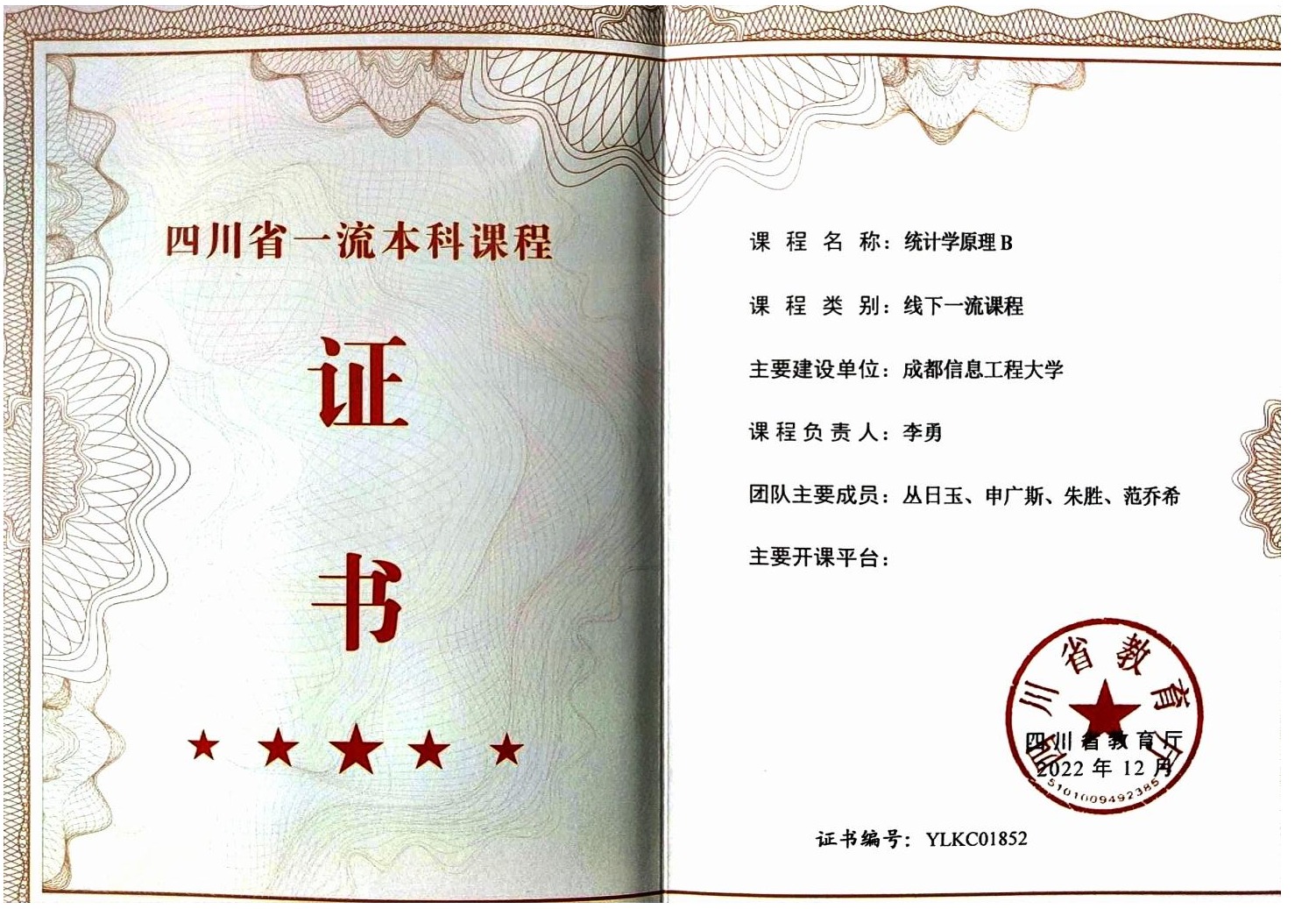 bevictor伟德官网《统计学原理B》课程认定为省级一流课程,课程负责人为公司经理李勇教授,认定证书编号:YLKC01852。公司将持续加大一流课程建设的支持与投入,分层分类推进课程教学改革,对标五类“金课”标准持续提升各类课程质量,引导教师进一步将“立德树人”的根本任务落实到课程教学中,将现代信息技术融入到课程教学模式改革中,切实有效提高课程高阶性、创新性及挑战度,在课程设计、教学形式中不断创新。公司力争建成更多优质课程等教学资源,为公司经济统计学和统计学两个国家级一流本科专业建设点夯实好基础,实现bevictor伟德官网高质量发展。