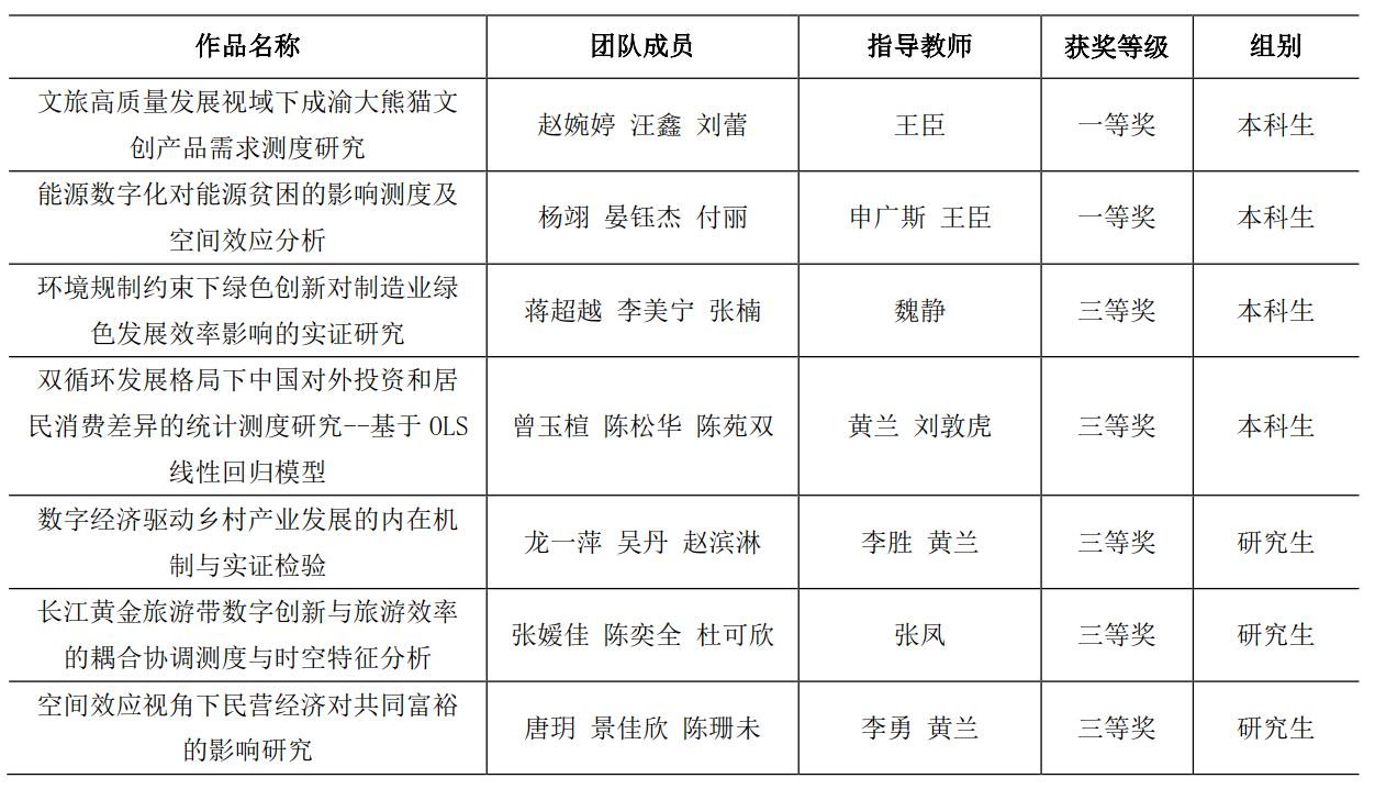 8月21-23日,2023年(第九届)全国老员工统计建模大赛全国总决赛在浙江财经大学圆满落幕。本次大赛由中国统计教育学会、教育部高等公司统计学类专业教学指导委员会和全国应用统计专业学位研究生教育指导委员会联合主办,浙江财经大学承办,中国政府统计研究中心协办。公司师生在大赛中喜获佳绩,斩获全国一等奖2项,全国三等奖5项,除此以外公司还获得省一等奖9项,省二等奖15项,省三等奖14项的好成绩。获全国赛奖项队伍信息如下: